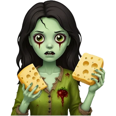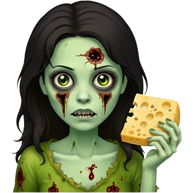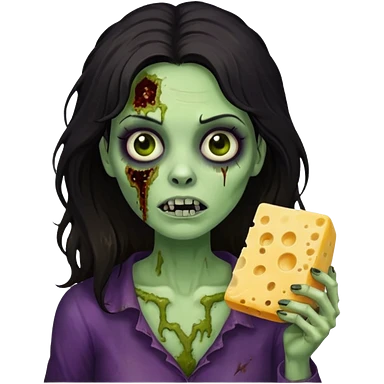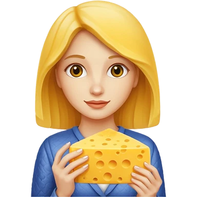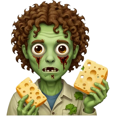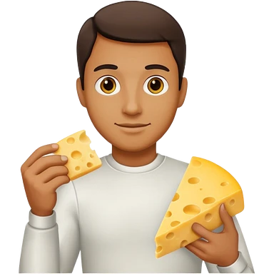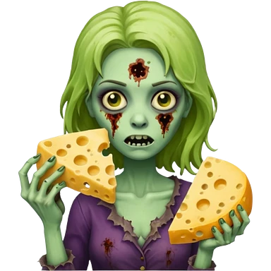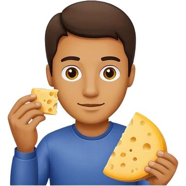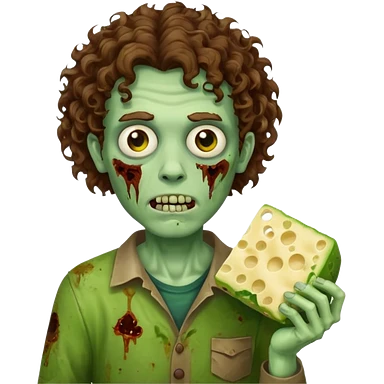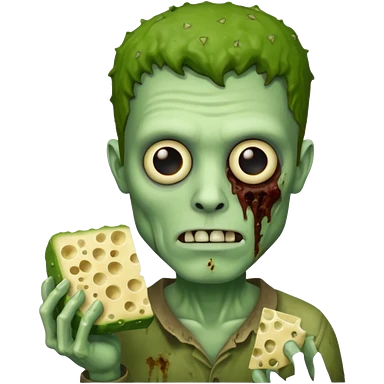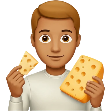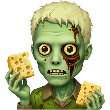 A piece of cheese that is cartoony with big eyes and is wearing a green suit emoji