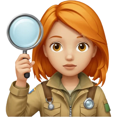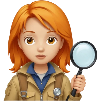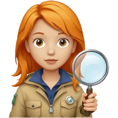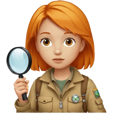 braid orange haired girl in explorer outfit, holding magnifying glass emoji