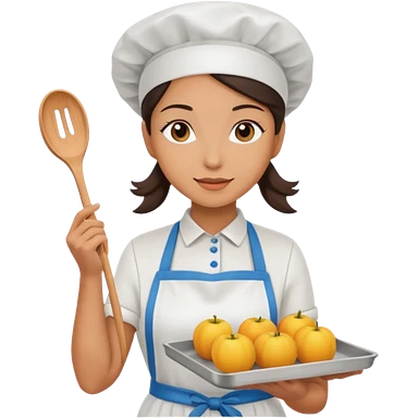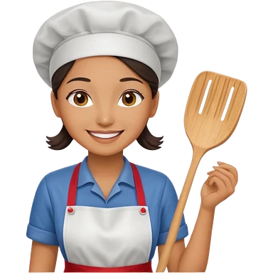 Apple iOS emoji-inspired rural old woman, chubby and friendly, short gray curly hair, flowery blouse, colorful apron, soft pastel colors, large expressive eyes, Chilean rural kitchen with wooden elements and clay pots, warm lighting, highly detailed and clean vector style emoji