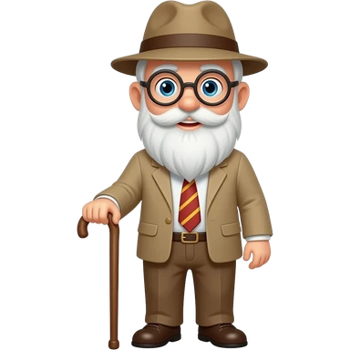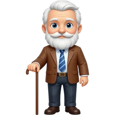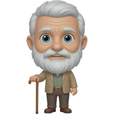A very old man leaning down, wearing a cloak. He has a white beard and a cane emoji