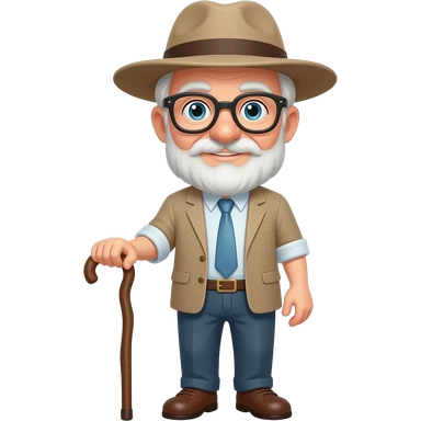 old man with cane and blue Hawaiian shirt and cream short and googles emoji