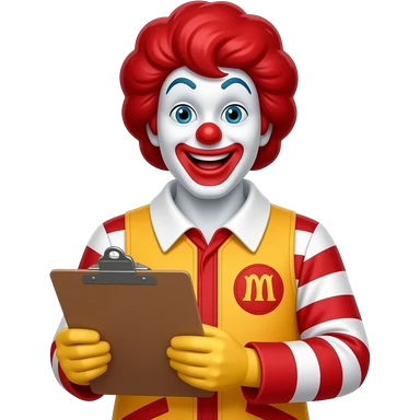 Ronald McDonald with clipboard emoji