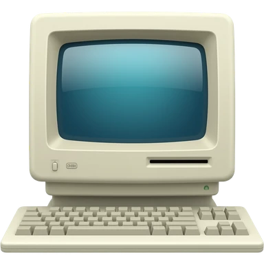 Young man sitting at a very old desktop computer from the 1990s with CRT monitor and beige tower emoji