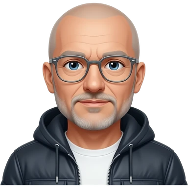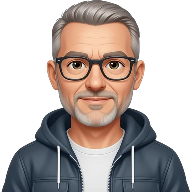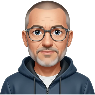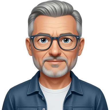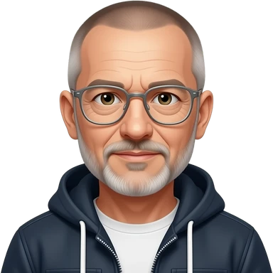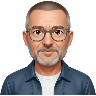 metal-framed glasses very entellectual man, 65 years old, street wear stubble, shaved short with clippers emoji