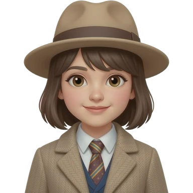 young girl with hat and wear coat and tie emoji