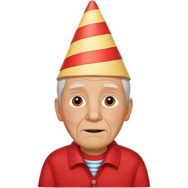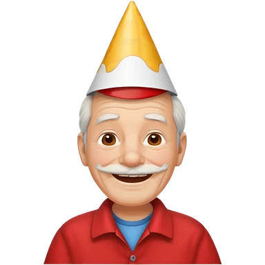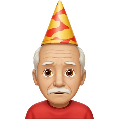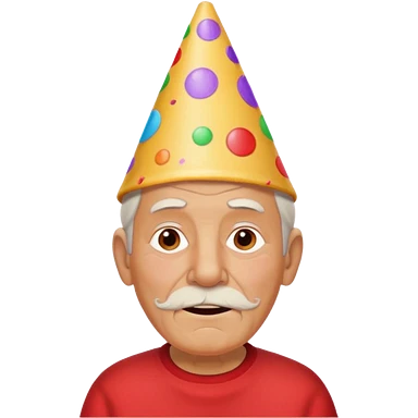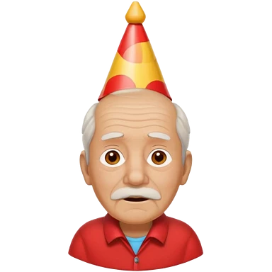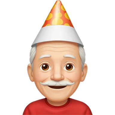 old man with warming smile, red shirt and birthday cone on his head emoji