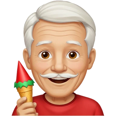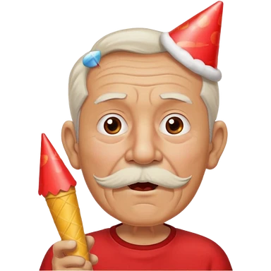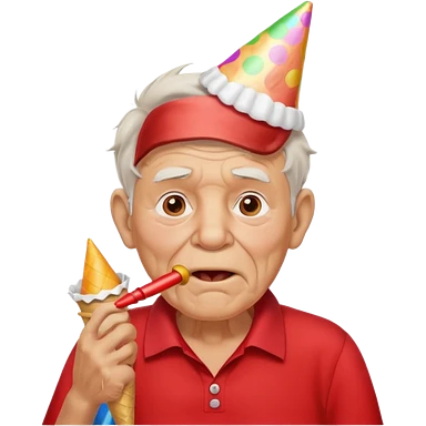 old man with red shirt and birthday cone, party horn on his mouth emoji | AI Emoji Generator