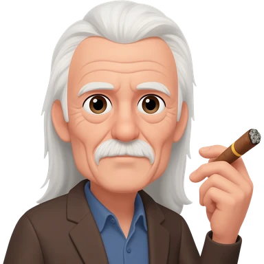 Old man with long white hair no facial hair and no hat holding a cigar emoji