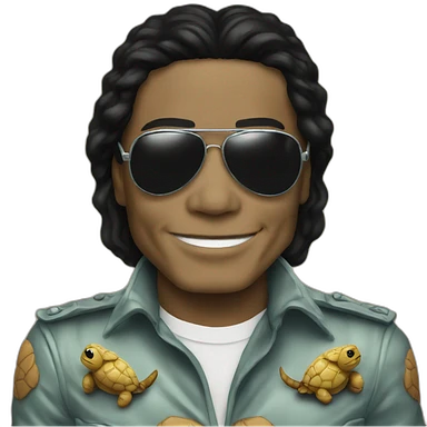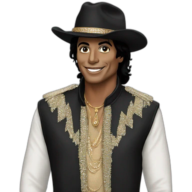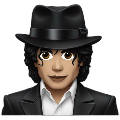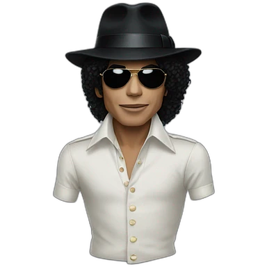 Michael Jackson is white, wearing completely black smokey Ray-Ban glasses, a white jacket, and a blue shirt. emoji