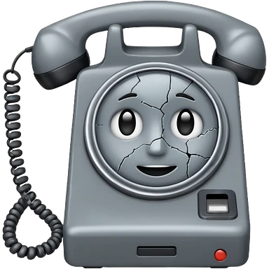 Minimalist emoji-style sticker of an old phone receiver with no signal waves, cracked and floating. Desaturated tones. emoji