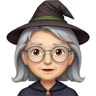 old witch with grey hair and glasses emoji | AI Emoji Generator
