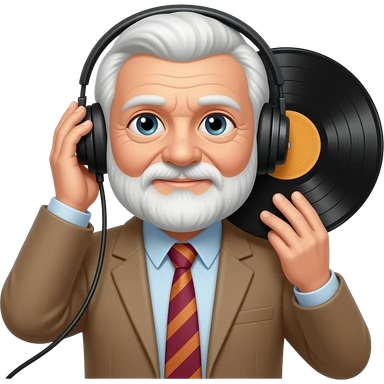 a old back guy with white afro hair and white beard, he has hearing aids in one ear emoji