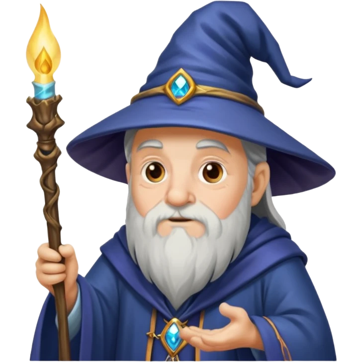 old man wizard with a beard casting a spell with a wand with sparkles and magic emoji