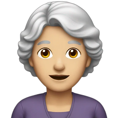 Old woman sitting with a Grey laptop and a vegetable emoji
