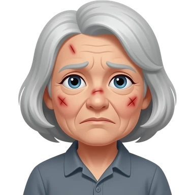 use a old woman not smiling with bruises on nose and chin from getting punched emoji