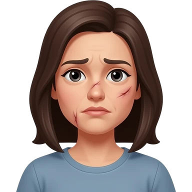 Zombie girl with bruises, she has a dark short wavy hair, she has a tired expression and dark eyes, she has dark circles too emoji
