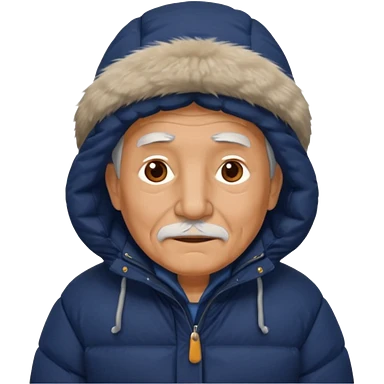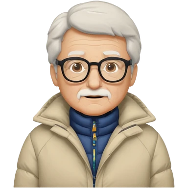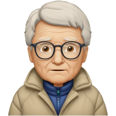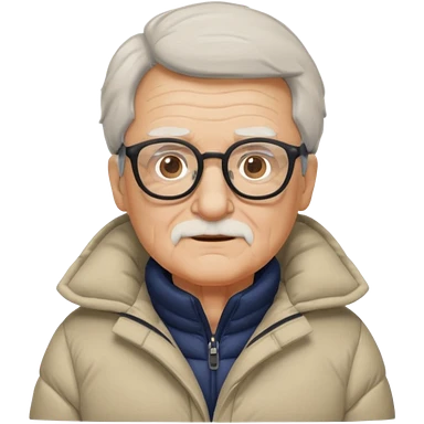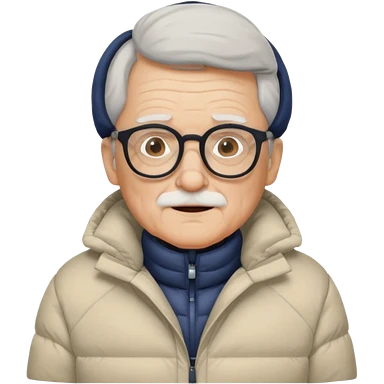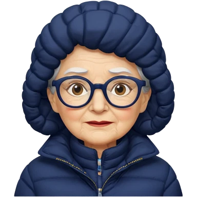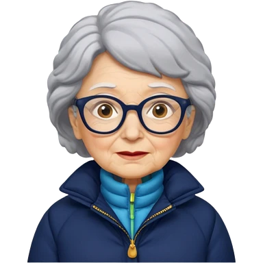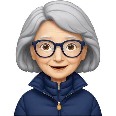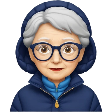 old wo man in navy puffy winter coat, wearing glasses emoji