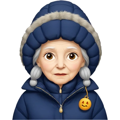 old woman in navy puffy winter coat emoji | AI Emoji Generator