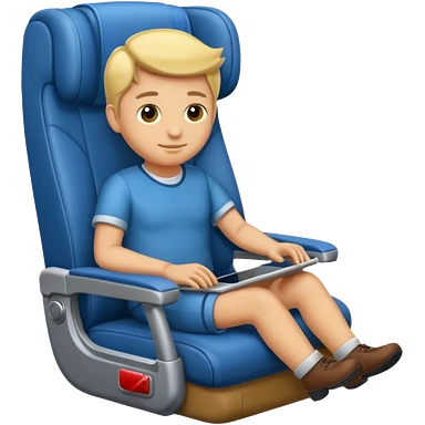 a kid boy sitting down an airplane passenger seat looking trough an airplane window emoji