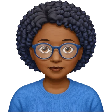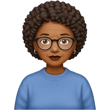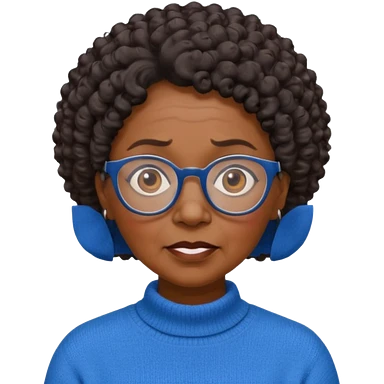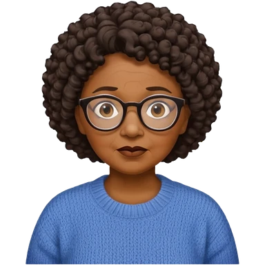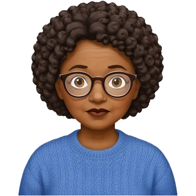 Old black woman, solemn, wearing glasses and blue sweater, short curly hair emoji
