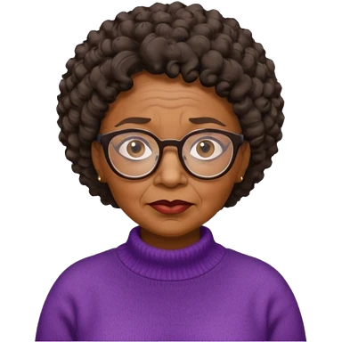 Old black woman, solemn, wearing glasses and sweater, short curly hair emoji