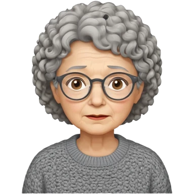 Old woman, solemn, wearing glasses and sweater, short curly hair emoji | AI Emoji Generator