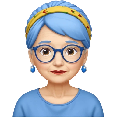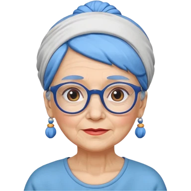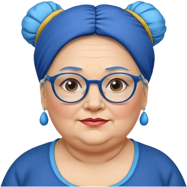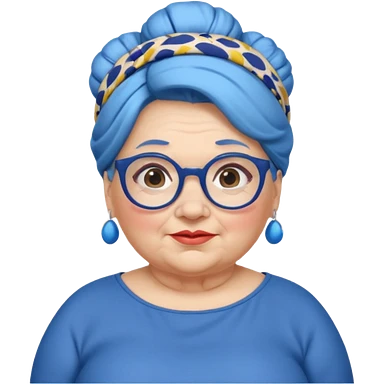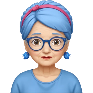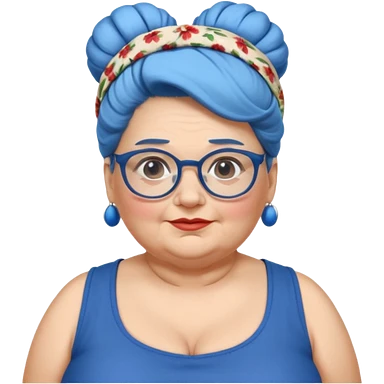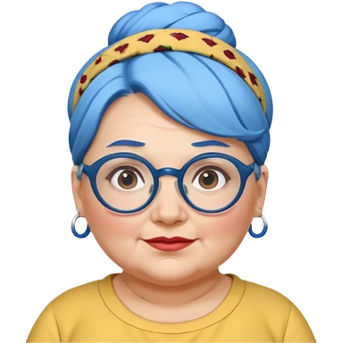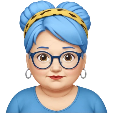 fat old woman with blue big bun hair and glassess and headband, no earrings emoji