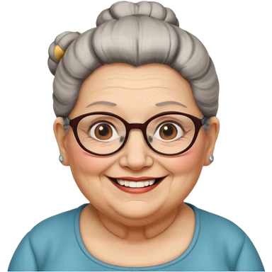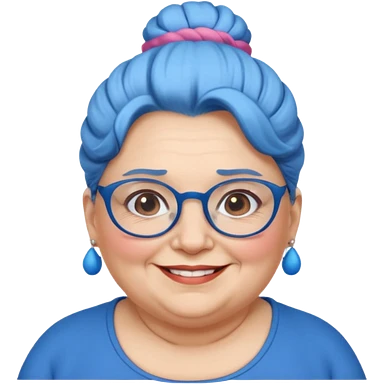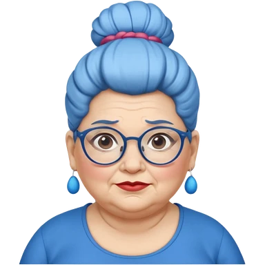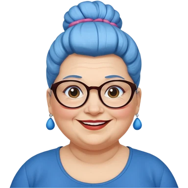 fat old woman with blue big bun hair and glassess, no earrings emoji