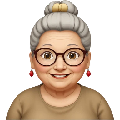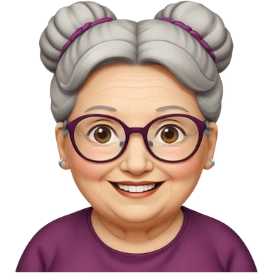 Old woman with brown hair one bun and glasses, white European emoji | AI Emoji Generator