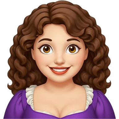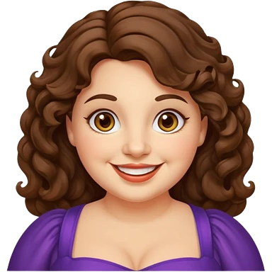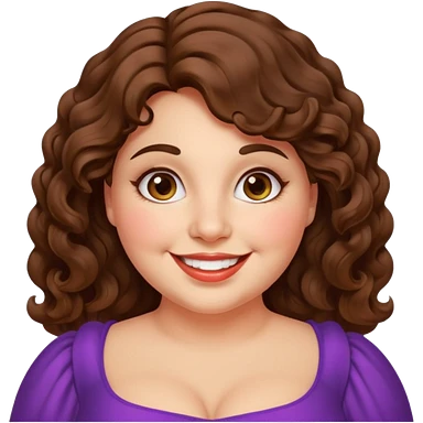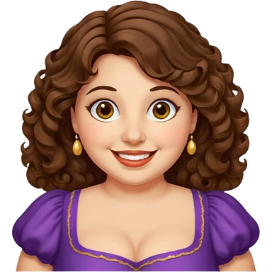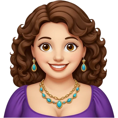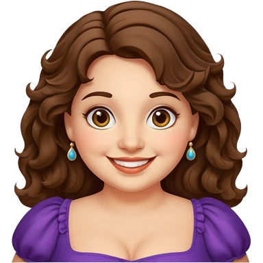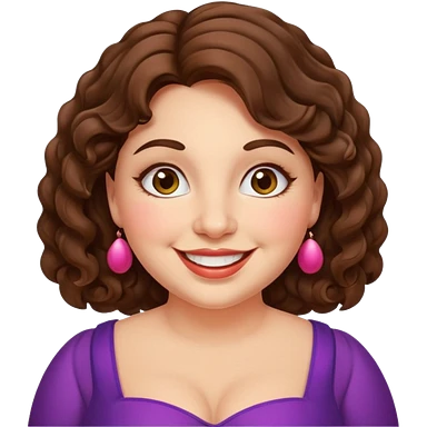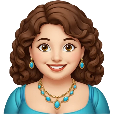 30 yr old italian woman, chubby, brown wavy hair, big brown eyes, huge smile, fancy dress emoji