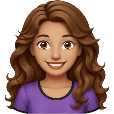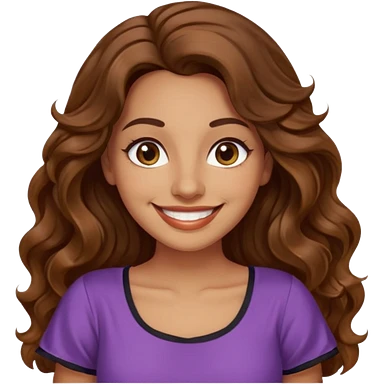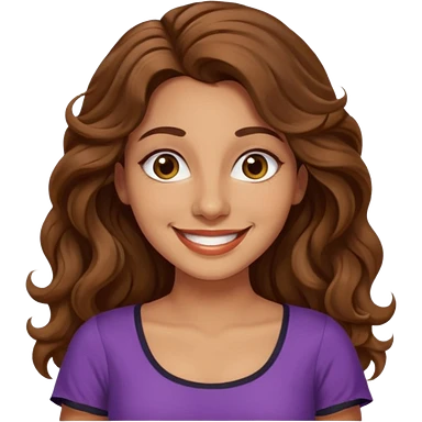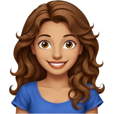 30 yr old italian woman, long brown wavy hair, big brown eyes, huge smile, fancy dress, no bangs, t shirt emoji