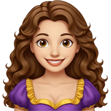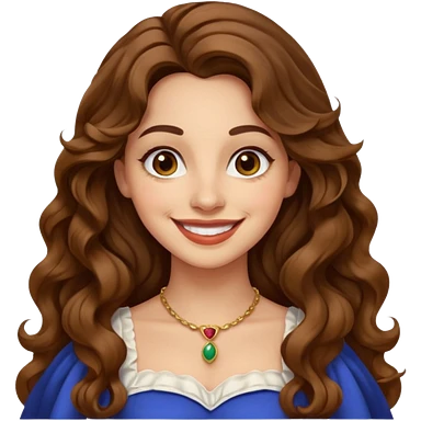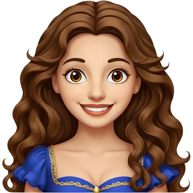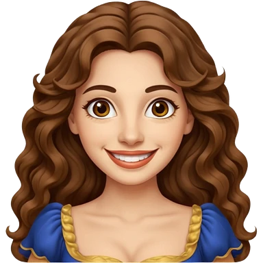 30 yr old italian woman, long brown wavy hair, big brown eyes, huge smile, fancy dress, no bangs, emoji