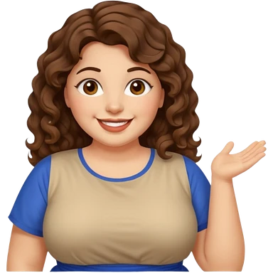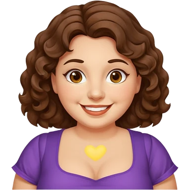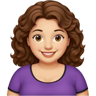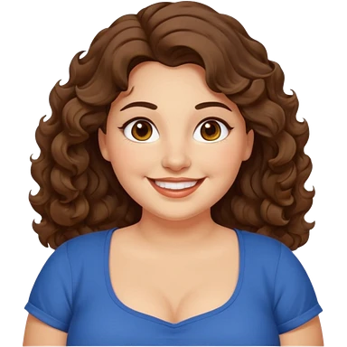 30 yr old italian woman, chubby, brown wavy hair, big brown eyes, huge smile, fancy dress, no bangs, t shirt emoji