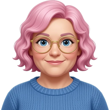 45-year-old Dutch white woman with bordeaux colored short hair, pink sweater and gold glasses emoji