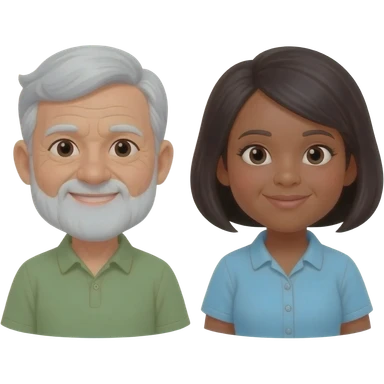 Older couple Black man grey beard and glasses white woman with green eyes and blonde hair emoji | AI Emoji Generator