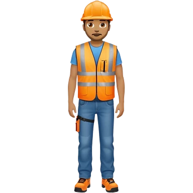 older engineer hi-vis orange overalls standing full body holding a card emoji | AI Emoji Generator