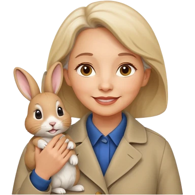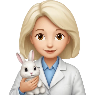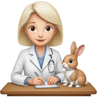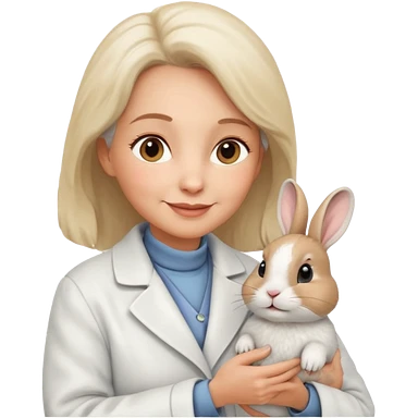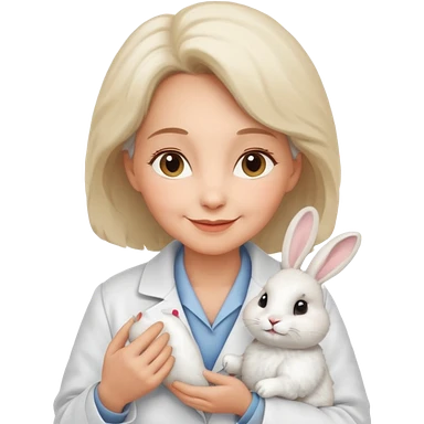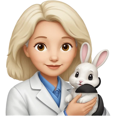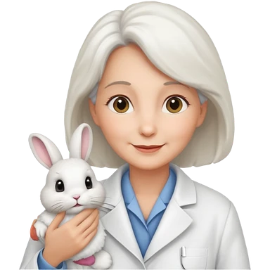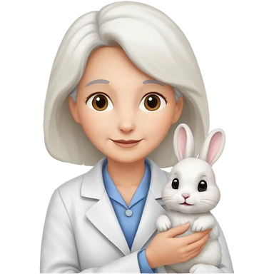 Older female vet – gentle smile, coat, checking rabbit on table. emoji | AI Emoji Generator