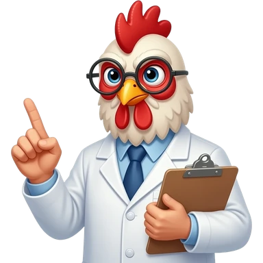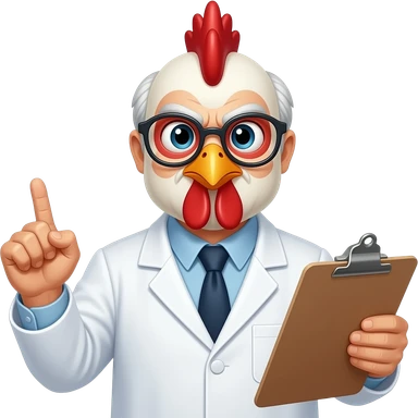 Older chicken in a lab coat with glasses holding a clipboard judging you emoji