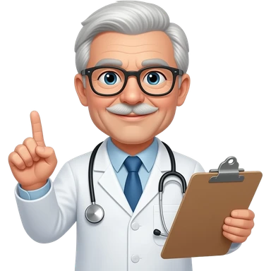 Older doctor that is a chicken with glasses holding a clipboard judging you emoji