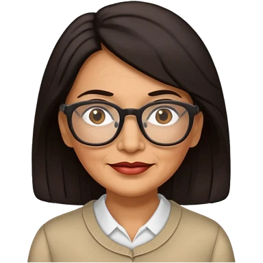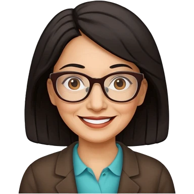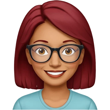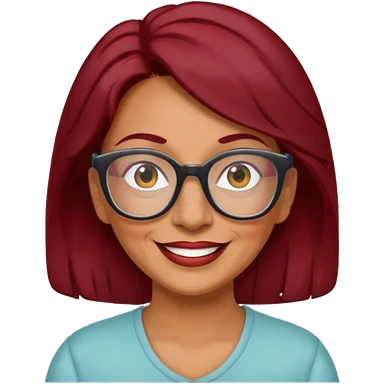 Beautiful, hispanic, female, older, mom, dark red hair color, glasses, smiling emoji