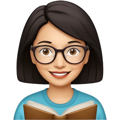 Older Hispanic woman smiling, with black-brown hair and wearing reading glasses emoji
