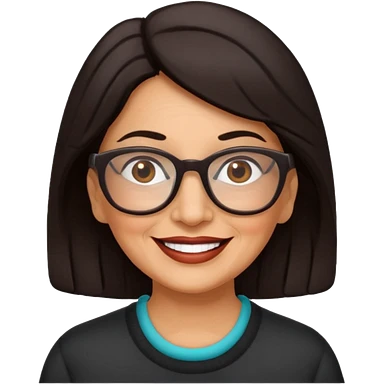 Happy white Hispanic woman with dark brown hair wearing glasses emoji