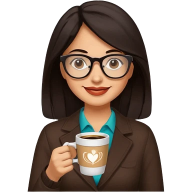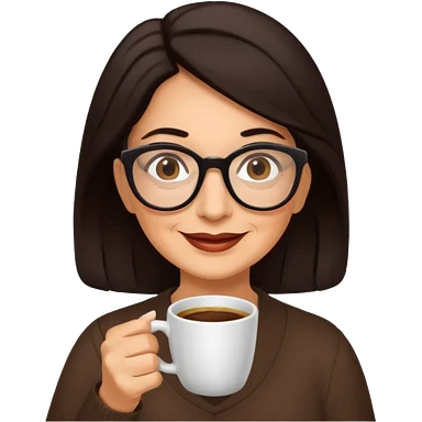 Hispanic woman with glasses. Dark hair. She is older, but cool. Happy and enjoying coffee emoji