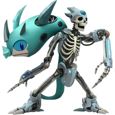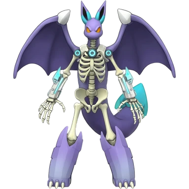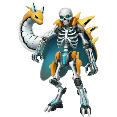 futuristic Skeleton-Cyborg-Reshiram-Manectric-Electrike-Salandit-Cubone-Umbreon-Marowak-Draco-Fakémon-hybrid-creature (full body), 4 legs emoji