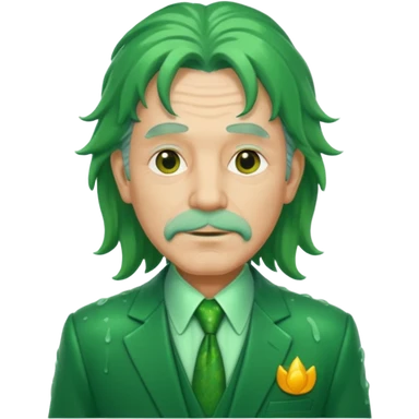 older man with long green hair in green suit looking wet emoji