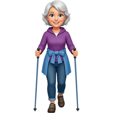 Older white woman out doing Nordic walking emoji