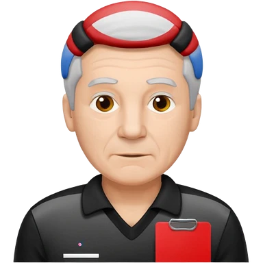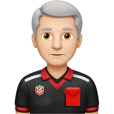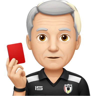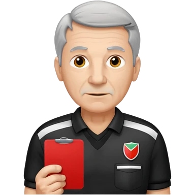 Older Referee – Experienced Look Wearing black jersey, gray hair, calm but firm, red card lifted halfway. emoji | AI Emoji Generator