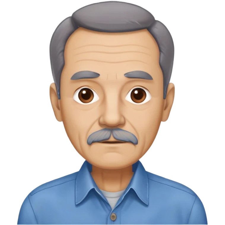 Older slim Hispanic man in his 60s with light skin. Thinner face with pronounced features. Expressive brown eyes, thick eyebrows showing age. Short brown hair with significant receding hairline. Scraggly brown beard with gray patches. Wearing a blue button-up shirt on his lean frame.emoji