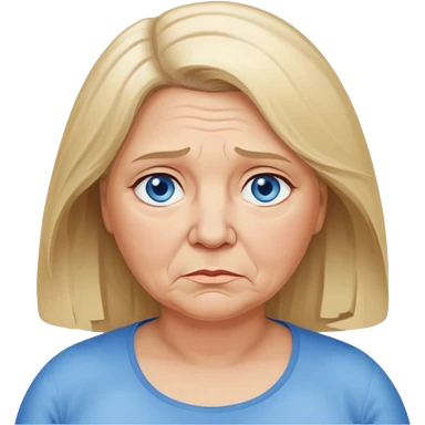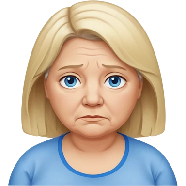 Head image of older fat dishwater blonde woman with shoulder length hair and blue eyes. Neutral expression bordering on sad. emoji