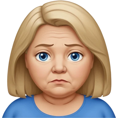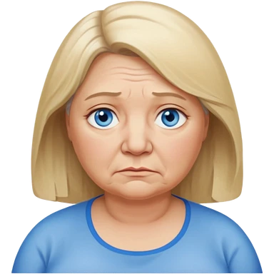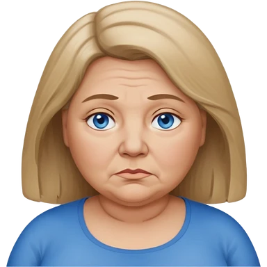 Head image of older very fat dark blonde woman with shoulder length hair and blue eyes. Neutral expression bordering on sad. emoji